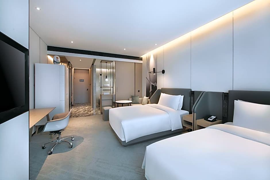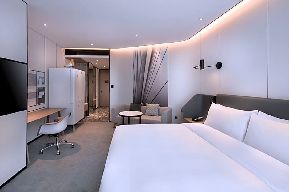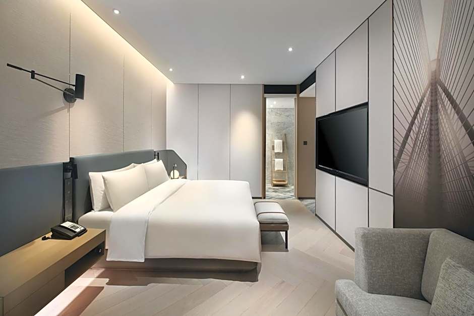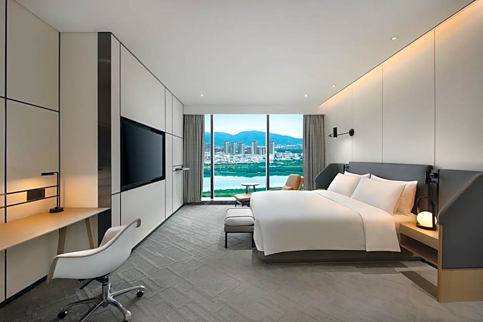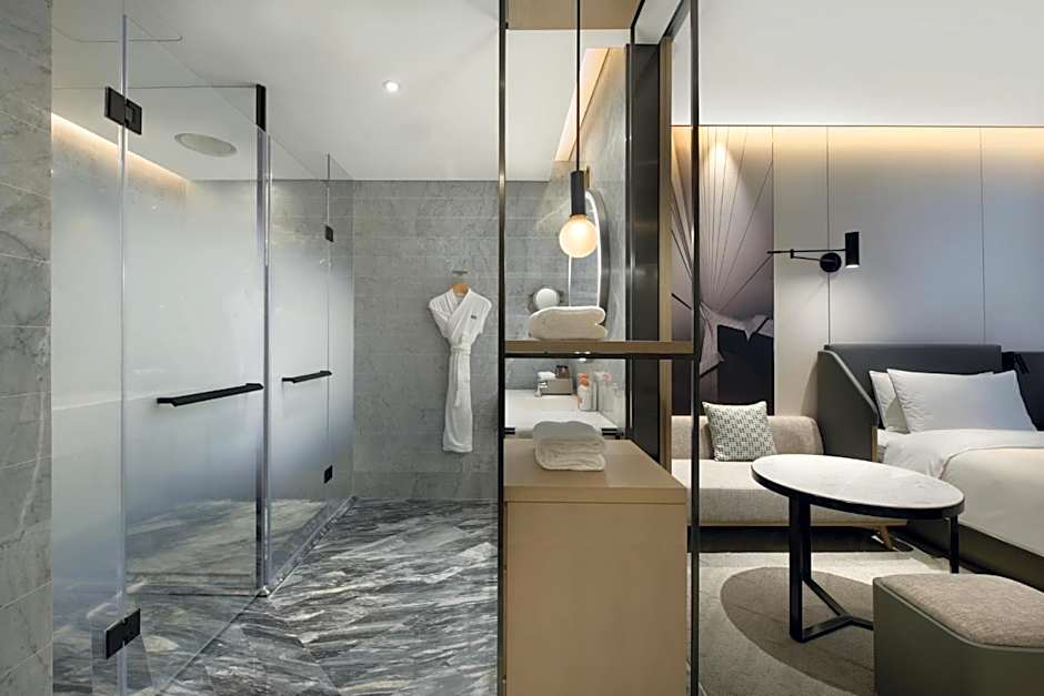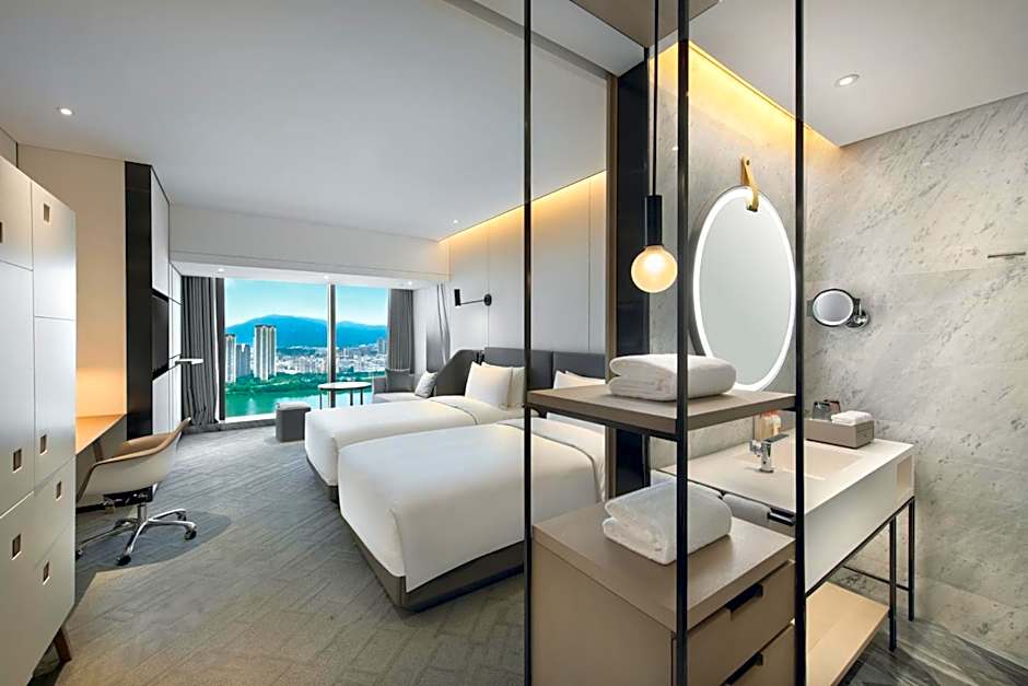 The suite provides a tea and coffee maker and city views. The unit offers 1 bed.